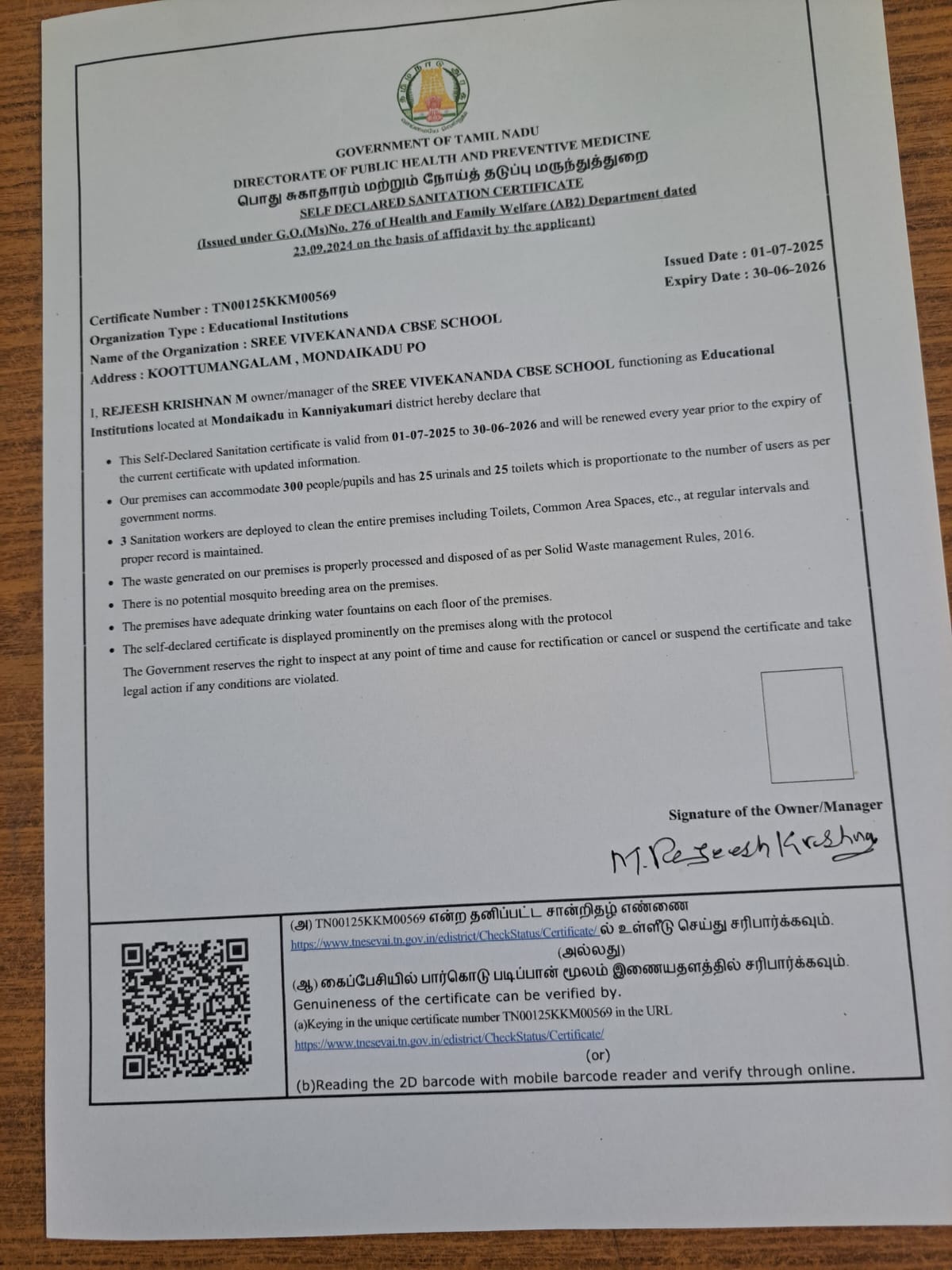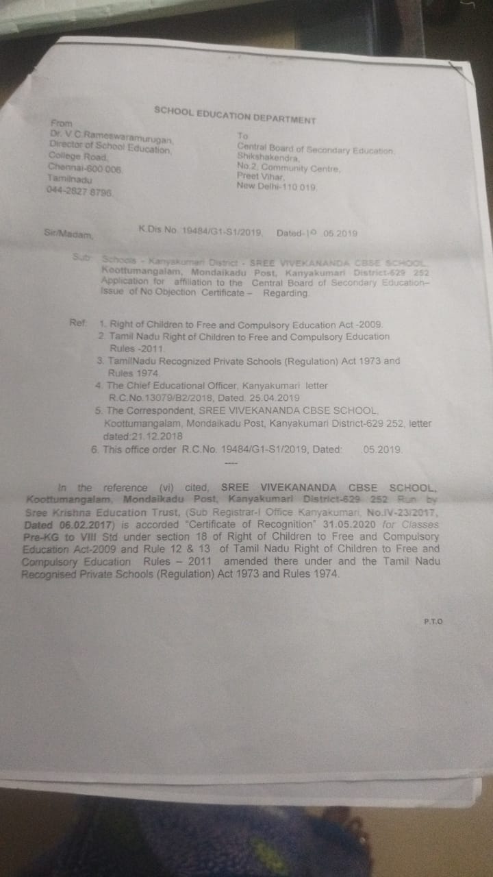 | School Name | SREE VIVEKANANDA CBSE SCHOOL |